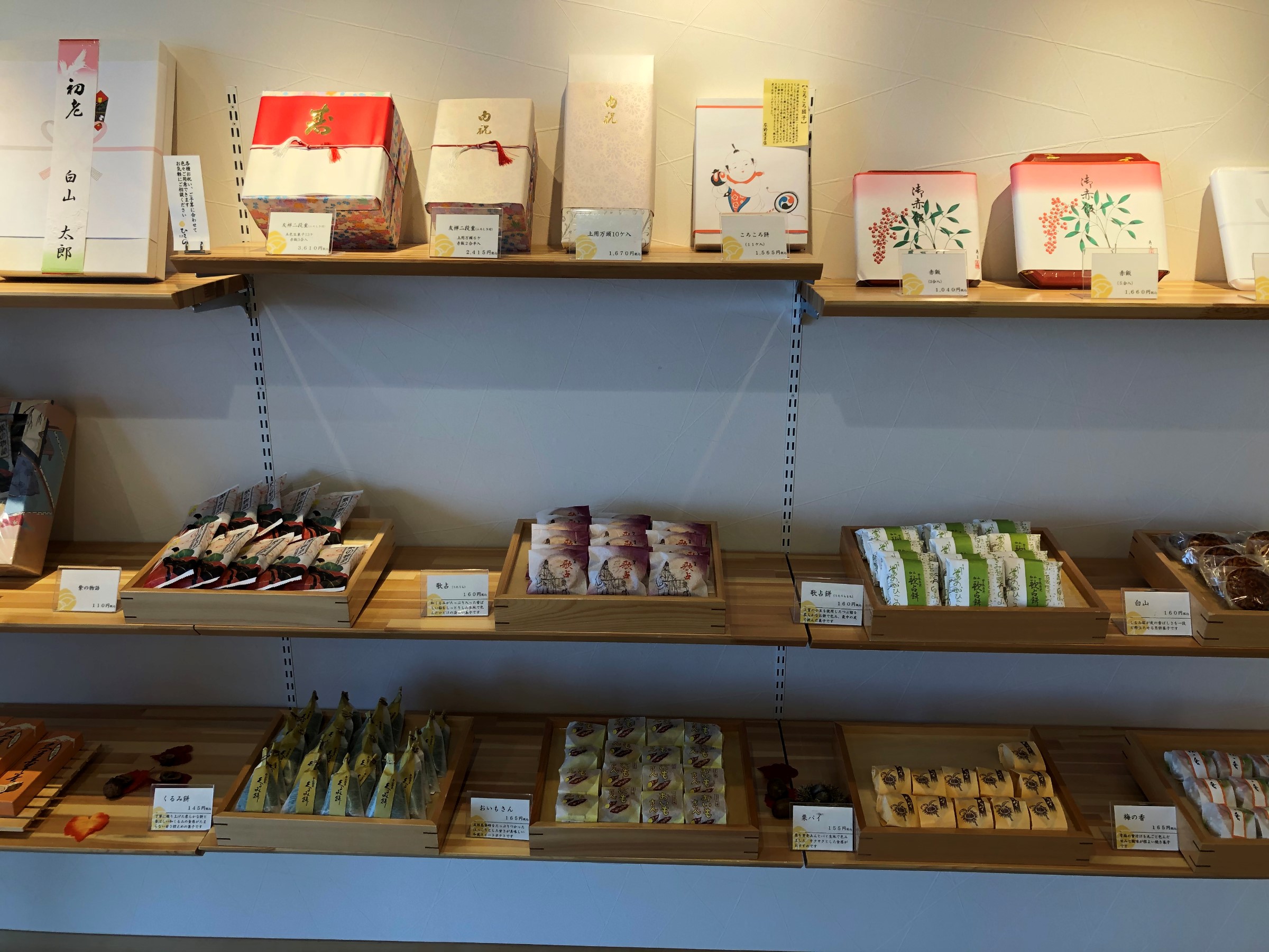 所在地:白山市鶴来大国町ホ88-1 TEL:076-272-0313 業種: 和菓子製造小売 営業時間:月水~土9:00~18:30 日祝 9:00~18:00 定休日:火曜日