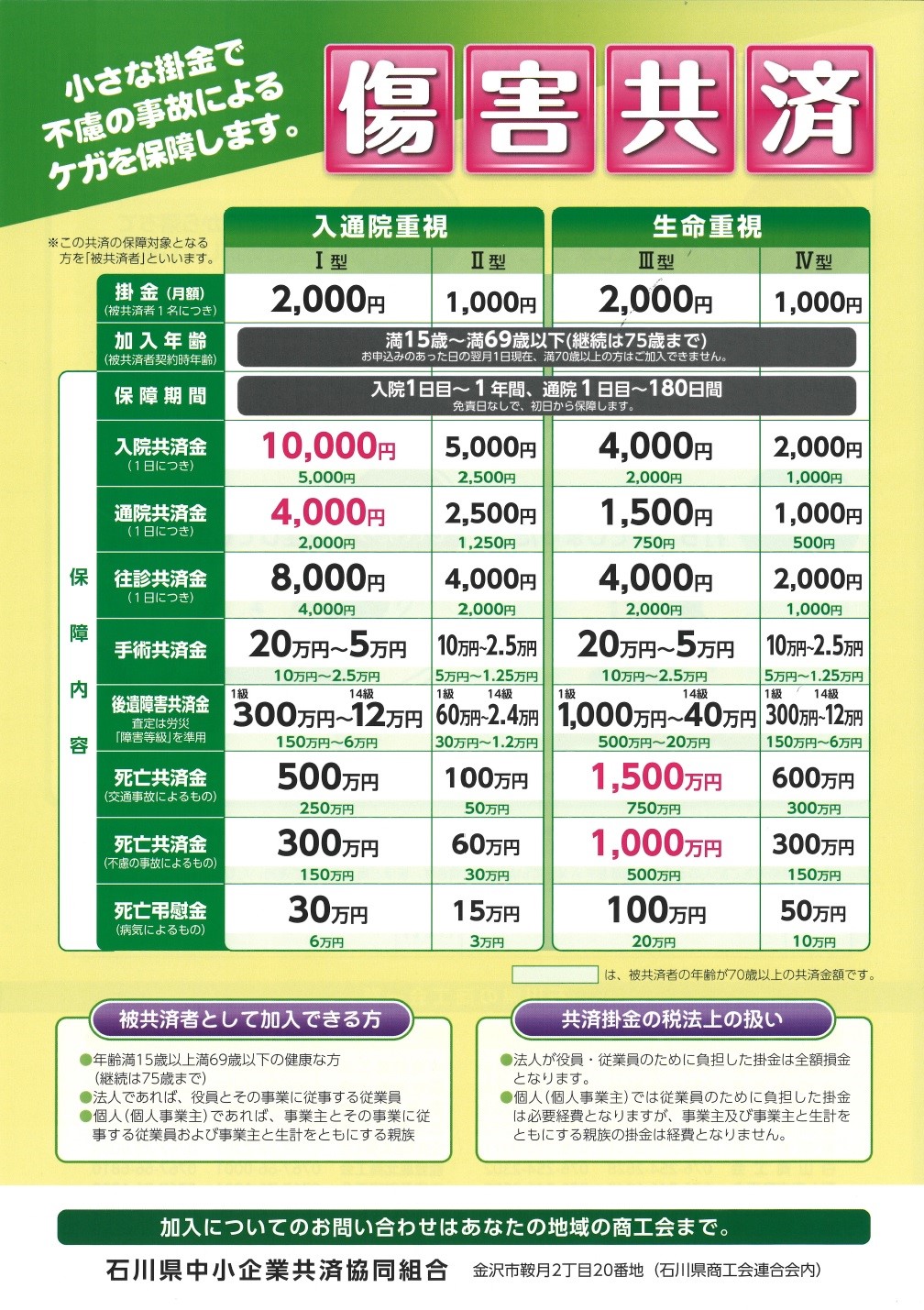 石川県中小企業共済協同組合(傷害共済・自動車事故費用共済)