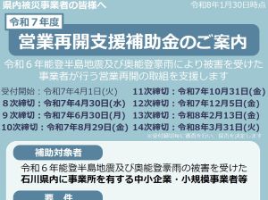【石川県商工会連合会】 営業再開支援補助金のご案内