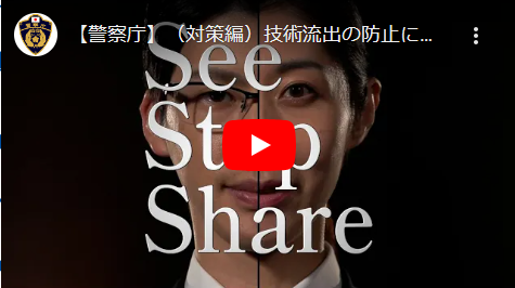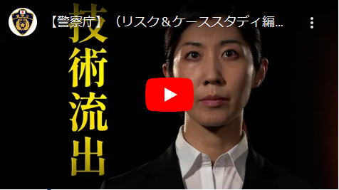 ※ 画像をクリックすると「YouTube警察庁公式チャンネル」から技術流出の防止に向けた広報動画をご視聴てきます