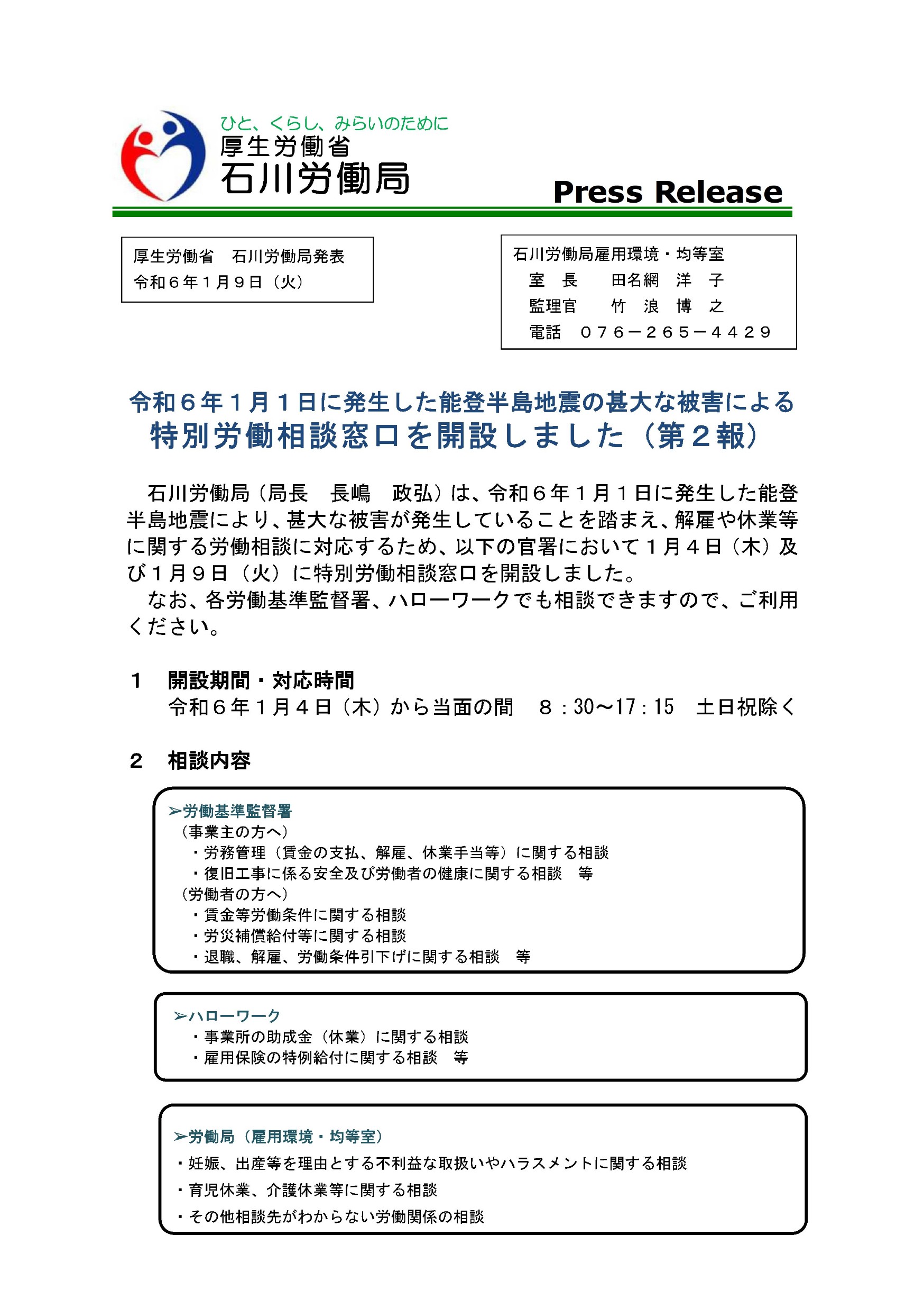 詳しくは >>>令和6年能登半島地震関連情報(石川労働局からのお知らせ) (mhlw.go.jp)