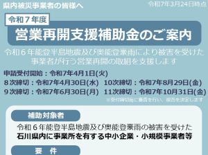 【石川県商工会連合会】 なりわい再建支援補助金の事前着手の適用と終了について