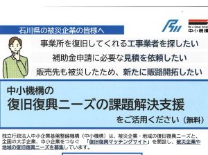 【石川県商工会連合会】 復旧復興ニーズの課題解決のためのマッチングサイトのご案内